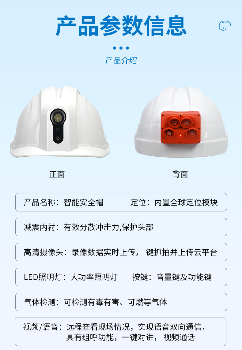 智能型安全帽該產品在原有基礎上實現手持物聯、智能安全帽的互聯互通,后臺數據的精準定位、監控:可改善安全行業的數據物聯、多維度監控互聯數據集中監控:將視步項對講、定位、氣體(有毒有害、可燃監測等功能